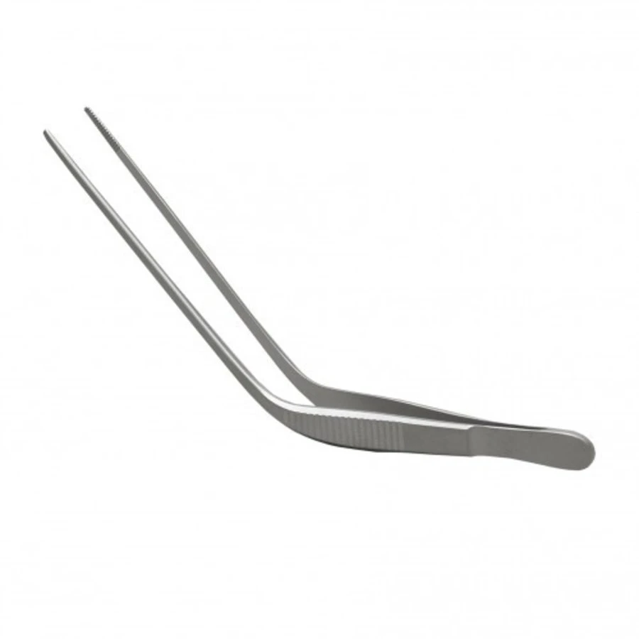 De pincet gebogen is een oorpincet, kniegebogen met geribbeld uiteinde van Aesculap.