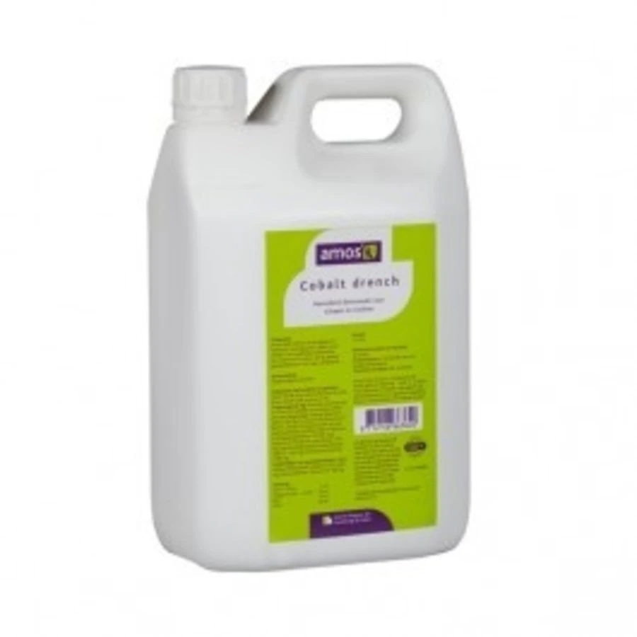 Amos Cobalt vitamine drench 2,5 ltr is een aanvullend diervoeder te gebruiken bij cobaltgebrek bij schaap en rund.