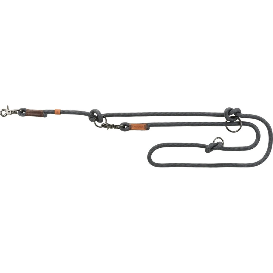 Deze verstelbare hondenriem met trigger snap haak is ideaal voor wandelingen met uw hond. Het touw bevat ringposities die door knopen traploos verstelbaar zijn. Deze 3-voudig verstelbare riem is gemaakt van rond geweven touw.