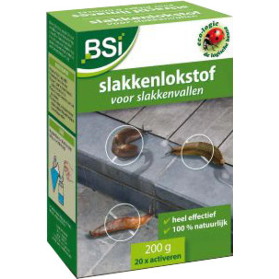 Deze slakkenlokstof van BSI is geschikt voor elke slakkenval en is zeer effectief en zuinig in het gebruik. U lost simpel 10 gram lokstof op in 100 ml water en giet dit in de val. Een verpakking is dus goed voor 20 vallen.