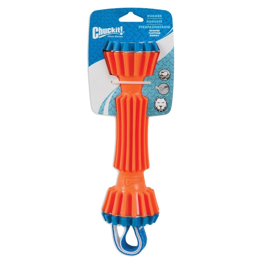 Deze Chuckit Bumpers heeft een ruw ontwerp waardoor het makkelijker wordt voor u en uw hond om dit speeltje te pakken. De Bumper heeft een sterke binnenkant en de buitenkant is gemaakt van TPR-rubber. Ook bevinden er zich op dit speeltje 2 nylon flappen die de grip op het speeltje beter maken en nog meer speelplezier geven. Dit speeltje blijft drijven en is beschikbaar in 2 maten