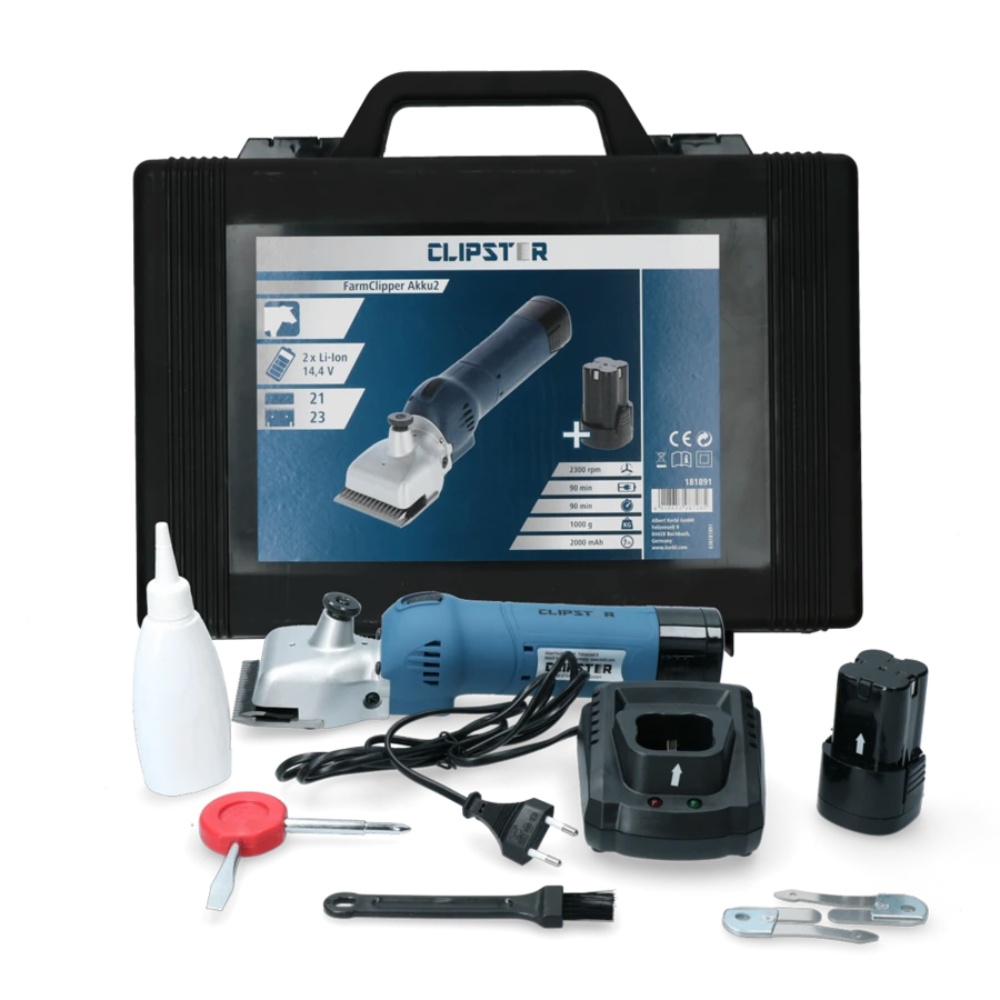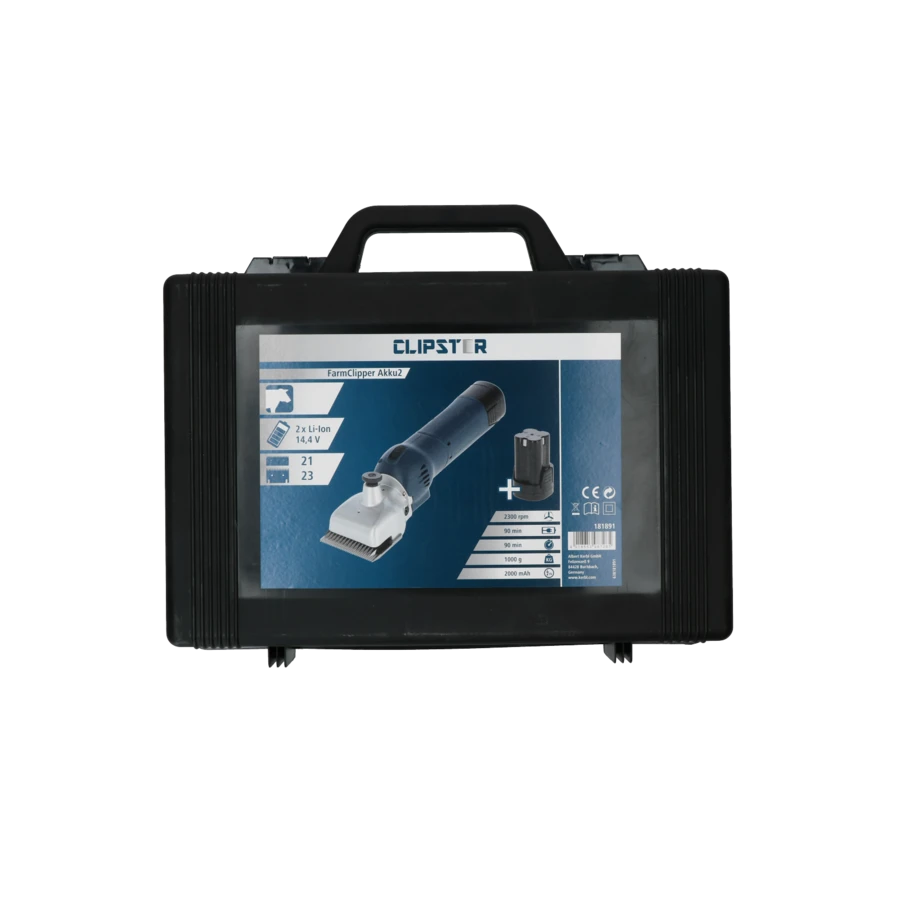 Deze Accu scheermachine Farmclipper voor het eenvoudig en precies scheren van uw rundvee. Deze scheermachine word geleverd inclusief 2 lithium-ion accu’s en Supra scheerbladen. De blokbatterijen maken ononderbroken scheren mogelijk dankzij hun geoptimaliseerde werk- en oplaadtijd. De scheermessen zorgen, dankzij hun geoptimaliseerde geometrie, voor gemakkelijk scheren en een verbeterd scheerpatroon. De omvang van de plastic behuizing garandeert dat ook kleine handen verzekerd zijn van een stevige grip op de scheermachine.