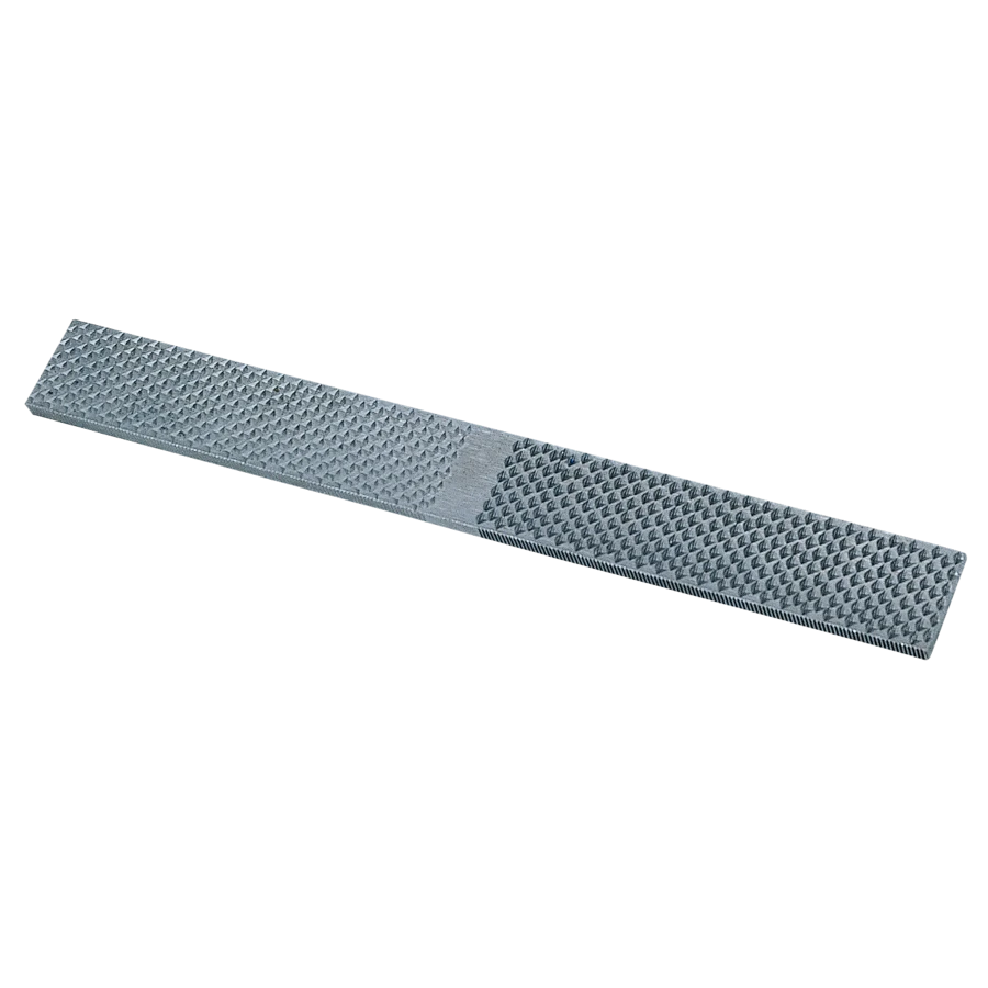 De rechte hoefrasp met een handvat die aan de ene kant grof is en de andere kant fijn.