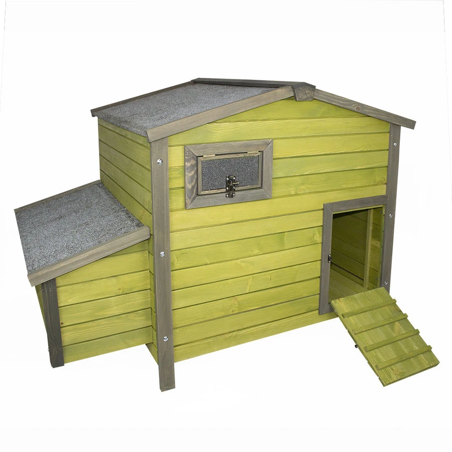 Kippenhok met legbak, loopplank, klapraampje en 2 zitstokken
