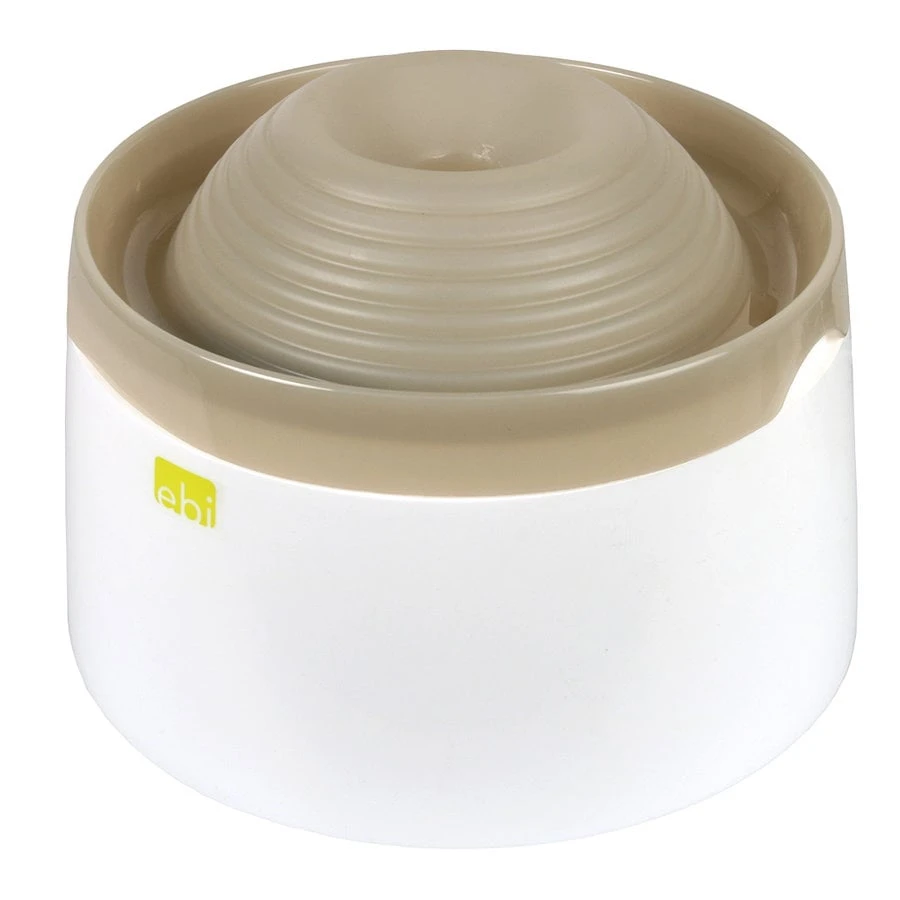 De Ebi Mango Drinkfontein bevordert de gezondheid van je huisdier. Hij garandeert steeds lekker vers, koel en gefilterd drinkwater. Doordat het water circuleert, wordt de zuurstofopname verhoogd. Stromend water is aantrekkelijker en dieren gaan er instinctief sneller van drinken. Als je kat of kleine hond meer drinkt, is dat goed voor zijn nierfunctie. Het helpt om het risico op de vorming van kristallen en om ziektes in de urinewegen te verminderen. Deze drinkfontein is bovendien geruisloos. Hij heeft 2 te vervangen actieve koolfilters (inbegrepen) voor continue reiniging van het water. Hij heeft een volume inhoud van 1,5 liter.