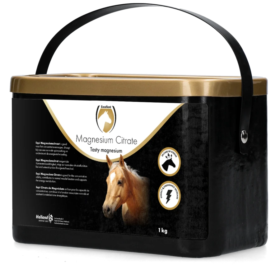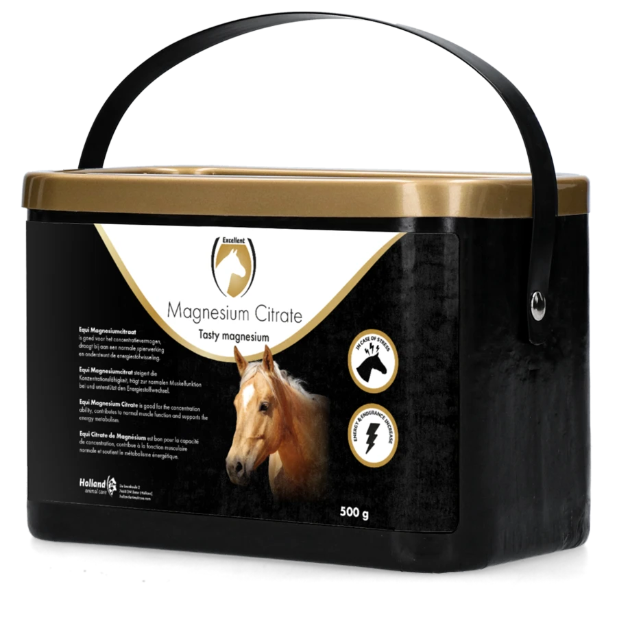 Magnesium citraat is een belangrijk mineraal voor het spier- en zenuwstelsel, de botten, de water- en energiehuishouding en stofwisseling. Tevens is het nodig voor de opname van calcium in de botten en voorkomt ophoping van calcium in andere weefsels. Magnesium is met name goed voor wedstrijdpaarden die last hebben van spanning.