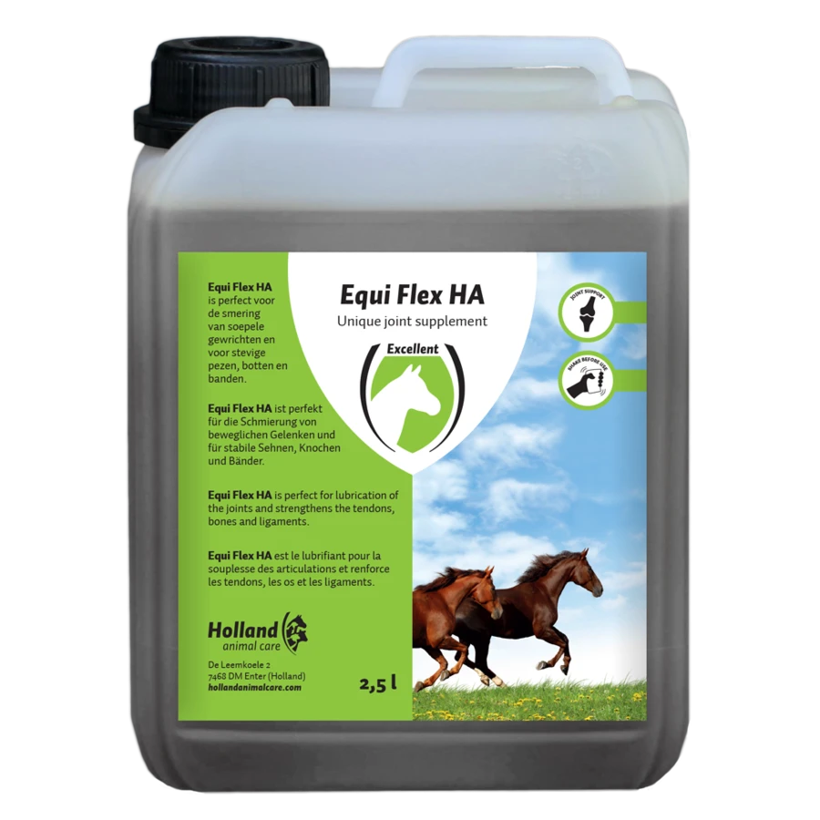 Equi Flex HA is de aanvullend diervoedr die de pezen, botten en banden verstevigt en daarnaast het behoud van kraakbeen ondersteunt. Het middel is perfect voor de smering van soepele gewrichten en zeer geschikt voor drachtige merries en paarden op leeftijd. Ook voor paarden met overgewicht en prestatiepaarden is het product te gebruiken.