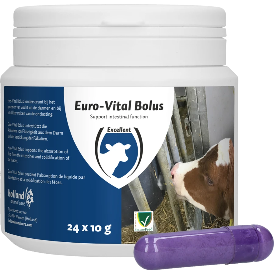 De Euro-vital bolus is de aanvullend diervoeder ter bevordering van de darmwerking. Deze bolus helpt bij het opnemen van vocht uit de darmen en de ontlasting dikker te maken. Voor een evenwichtige darmflora van kalveren. Rehydratatietherapie “Meerdere soorten formule”. Eenvoudig te gebruiken, niet mengen en niet roeren.