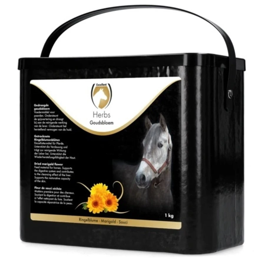 Excellent Herbs goudsbloem is een voedermiddel voor paarden. Ter ondersteuning van de spijsvertering, leverreiniging en het herstellend vermogen van de huid