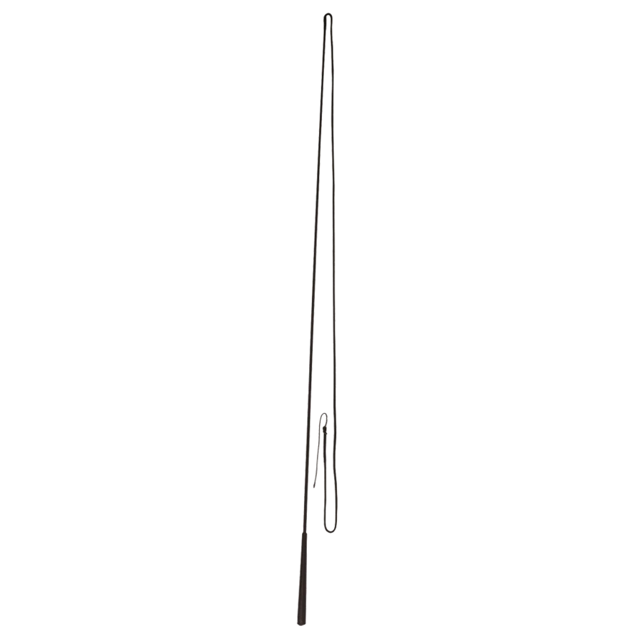 De professionele zwarte longeerzweep van glasvezel en met nylonbeveiliging. Deze zweep is gevlochten en niet deelbaar.