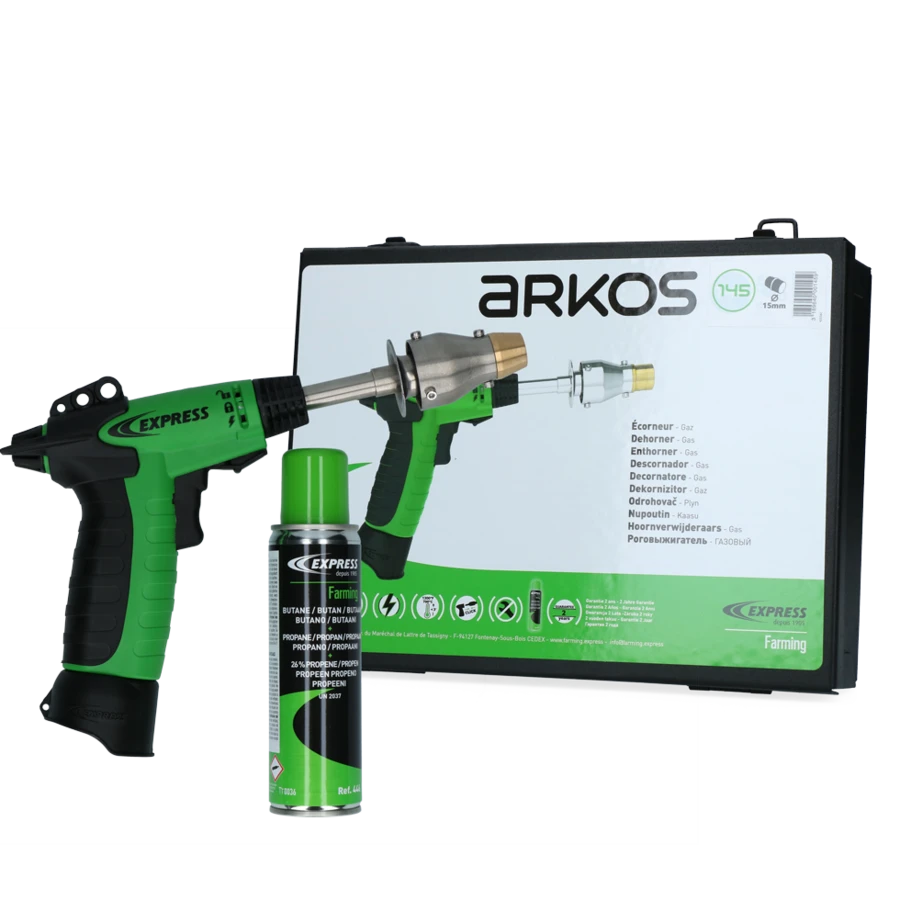 De lichgewicht en draagbare onthoorner welke ideaal is oor fokkers die hun vee in de best mogelijke hygiënische omstandigheden willen houden. Deze onthoorner bevat een patroon, verpakt in een metalen koffer en inclusief gasflesje. De omkeerbare punt binnenin, ø 17 en 19 mm zorgt ervoor dat het individueel aan het vee aan te passen is. De gebruikstijd is ongeveer 2 uur. Deze onthoorner is zonder zichtbare vlam.