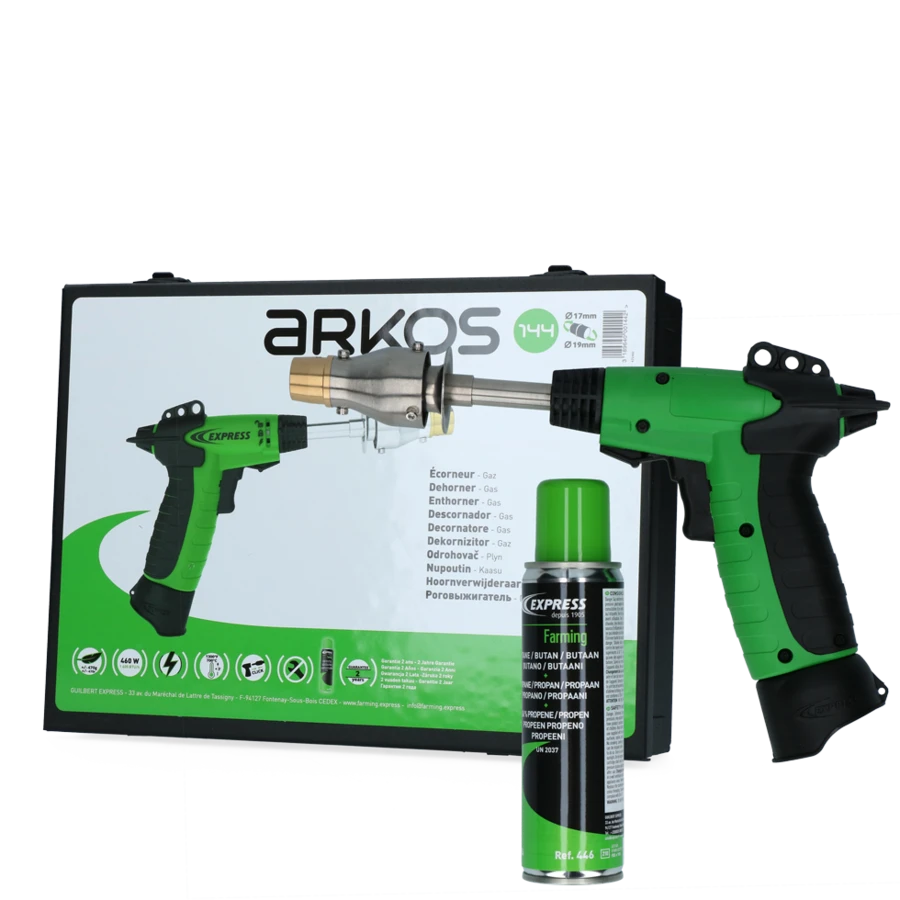 Deze draagbare en lichtgewicht onthoorner voor rundvee is verpakt in een metalen koffer inclusief gaspatroon. Deze onthoorner voor rundvee is ideaal voor fokkers die hun vee in de best mogelijke hygiënische omstandigheden willen houden. De omkeerbare punt binnenin, ø 17 en 19 mm zorgt ervoor dat het individueel aan het vee aan te passen is. De gebruikstijd is ongeveer 2 uur.