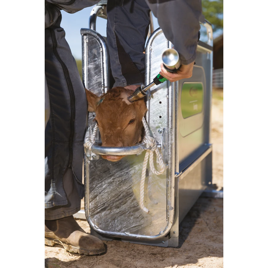 Deze kooi is speciaal ontworpen als hulpmiddel bij het onthoornen van kalveren. Door het handige formaat is de kooi overal te plaatsen en kan het – zonder te demonteren – in een bestelbus vervoerd worden. Met behulp van de mobility kit (zie accesoires) is verplaatsen van de kooi een peulenschil. De kooi beschikt over enkele voordelen, namelijk: