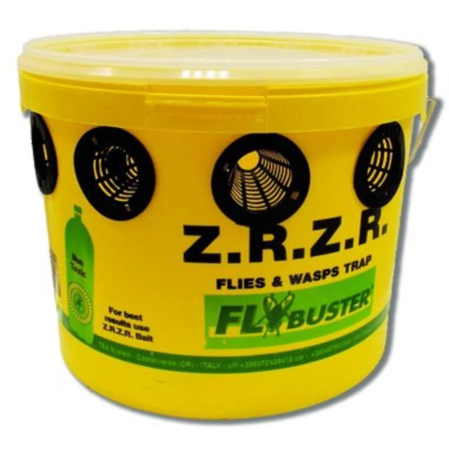 Voor serieuze vliegenoverlast bij bijvoorbeeld de stal zijn ook serieuze vliegenvallen nodig. De Flybuster vliegenval emmer is zo’n oplossing. De grote emmer beschikt over 8 gaten waar de vliegen in kunnen vliegen. Door de speciale kegels die u in de gaten klikt, kunnen de vliegen niet meer naar buiten en verdrinken ze in de lokstof die u in de emmer giet. Afhankelijk van de gebruikte lokstof kunt u zo duizenden vliegen vangen voordat u de emmer moet legen.