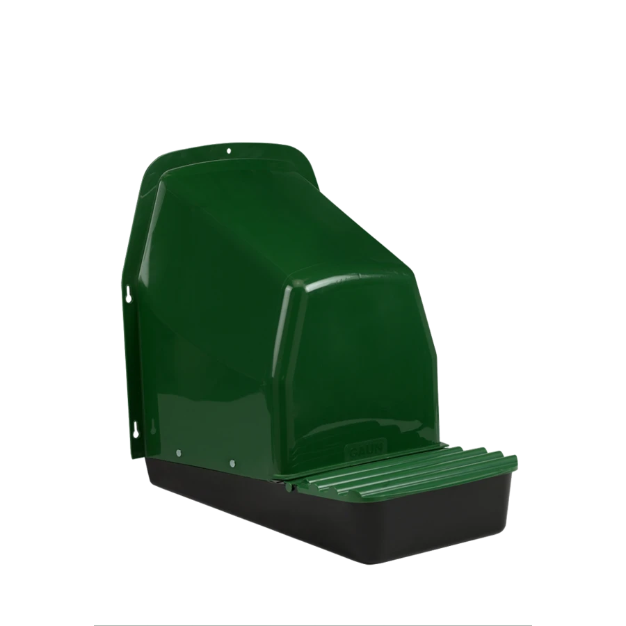 Het stevige groene legnest inclusief een van buitenaf bereikbare opvangbak met deksel voor de eieren. Deze legnest is eenvoudig van buitenaf aan het kippenhok te monteren, waardoor het binnen geen ruimte inneemt