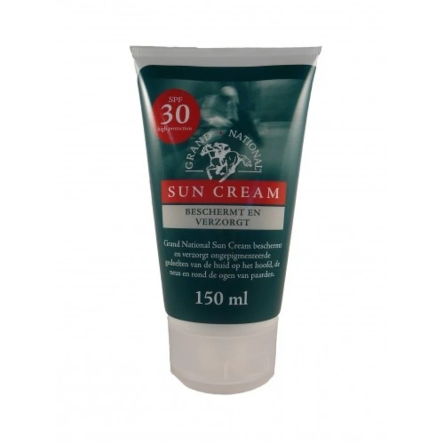 Grand National Sun Cream beschermt en verzorgt ongepigmenteerde gedeelten van de huid, hoofd, neus en rond de ogen van paarden (bij fotosensibiliteit en zonnebrand).