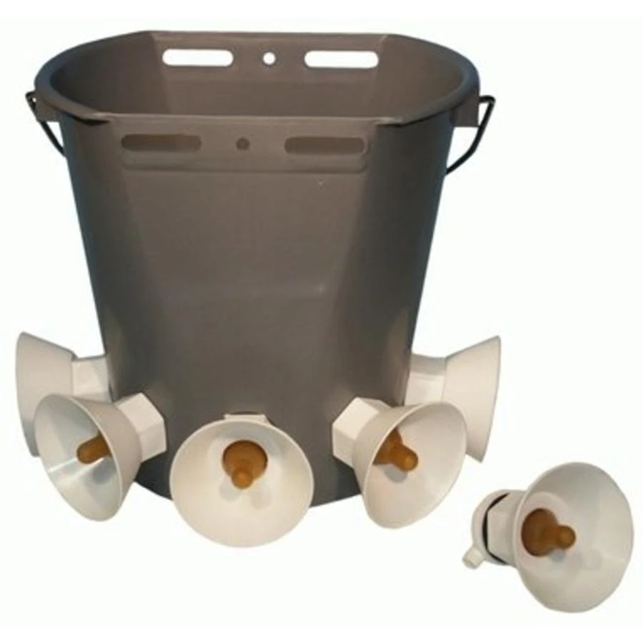 Met deze lammerenbar geeft u 5 lammeren in 1x de fles. De lammerenbar wordt compleet geleverd met emmer, spenen etc.