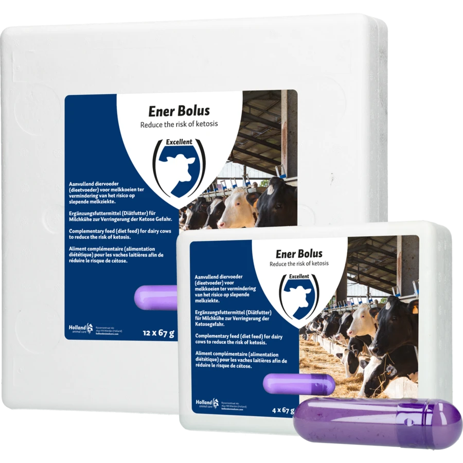 De Ener bolus is een aanvullende diervoeder ter vermindering van het risico op/van slepende melkziekte bij uw melkkoeien. Deze bolus pakt de negatieve energiebalans bij de bron aan en is daardoor de snelste weg naar resultaat. Voor een snel herstel van de energiebalans en verhogen van het energiemetabalisme. Daarnaast optimaliseert het de pensflora en bevat het ook vitaminen en mineralen voor een verbetering van de algehele voedingstoestand. Bevat PS (PensStimulans) => gevolg géén terugval na de behandelmethode en een betere penswerking.
