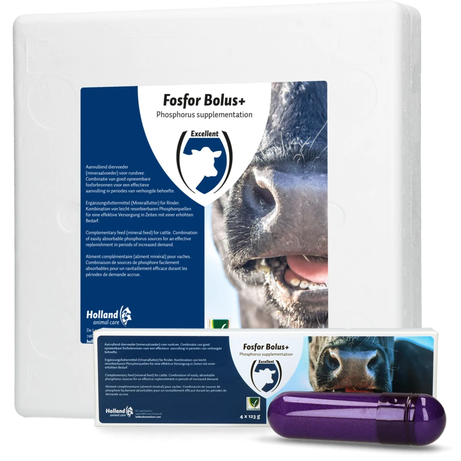 Fosfor Bolus+ is de aanvullende diervoeder met mineralen voor de koeien die moeilijk opstarten. Bijvoorbeeld voor trage koeien, vermindering herkauwen, hardnekkige melkziektegevallen en koeien die veel liggen.