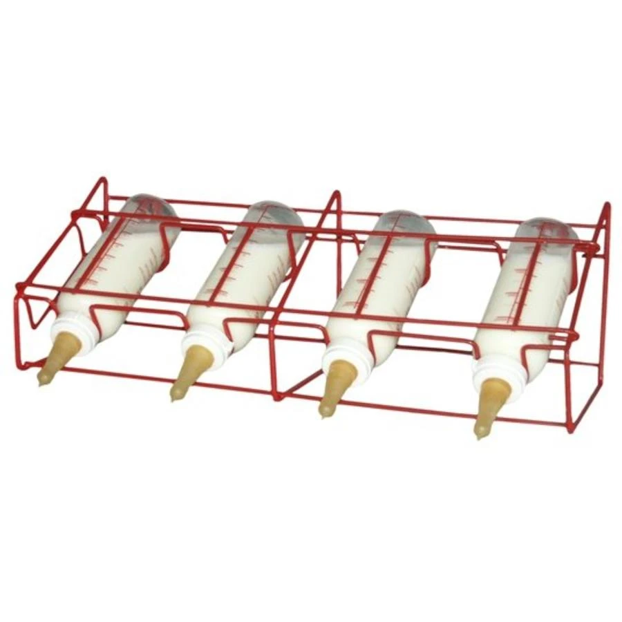 Met dit flessenrek geeft u 4 lammeren in 1x de fles. Het rek kan eenvoudig aan een wand gemonteerd worden en de flessen zijn er gemakkelijk in te hangen.
