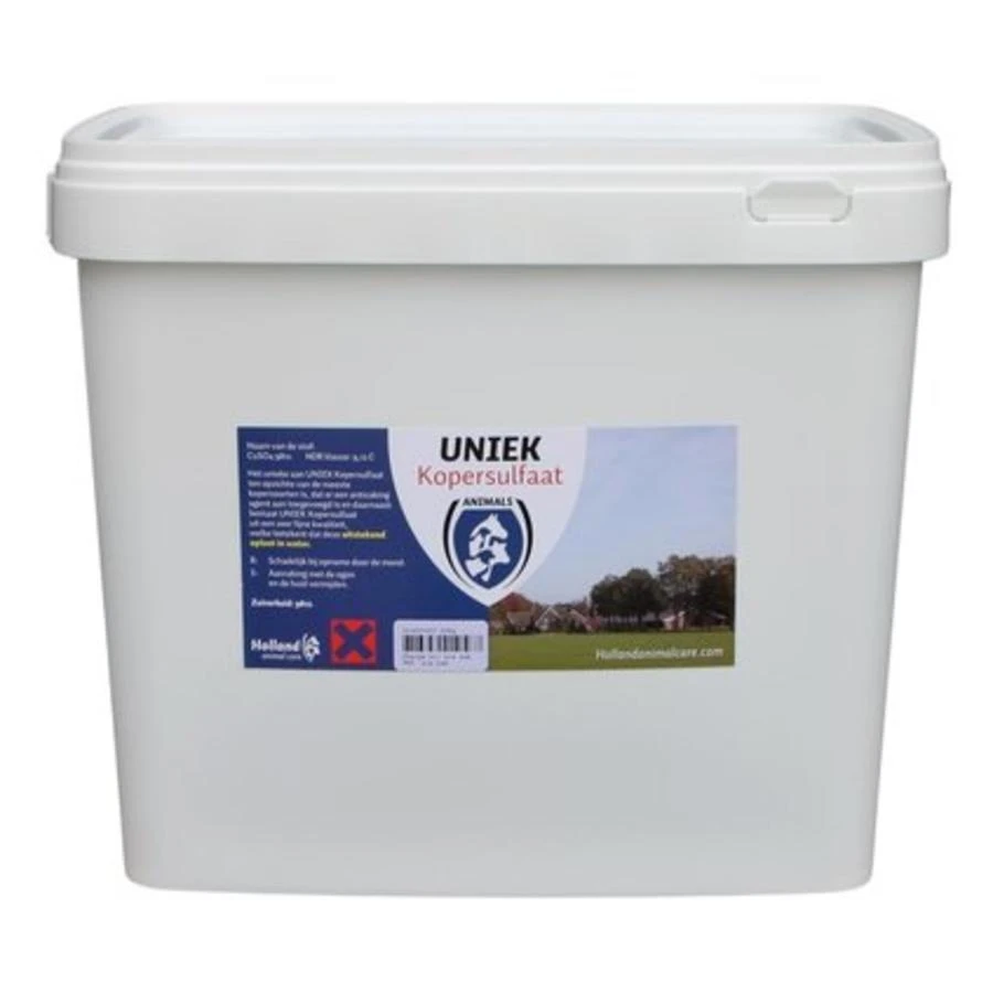 Het unieke aan UNIEK Kopersulfaat ten opzichte van de meeste kopersoorten is, dat er een anti-caking agent aan toegevoegd is en daarnaast bestaat UNIEK Kopersulfaat uit een zeer fijne kwaliteit, welke betekent dat deze uitstekend oplost in water.