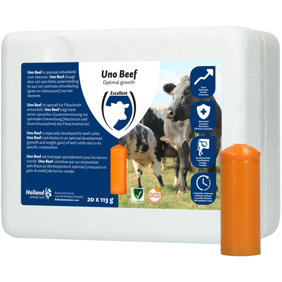 2 UNO Beef bolussen per jongvee met een gewicht vanaf 150 kg.
