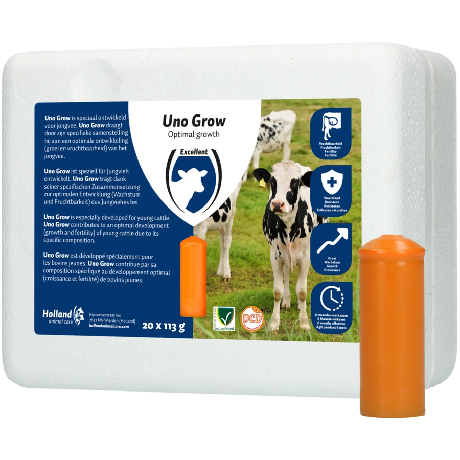2 UNO Grow bolussen per jongvee met een gewicht vanaf 150 kg.