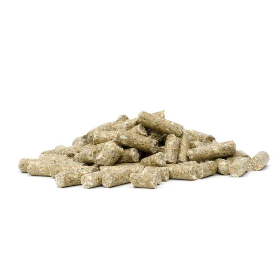 Haver, Gerst, Tarwe, Maïs, Tarwegries, Luzerne, Lijnzaad, Zonnepitschilfers, Melasse.