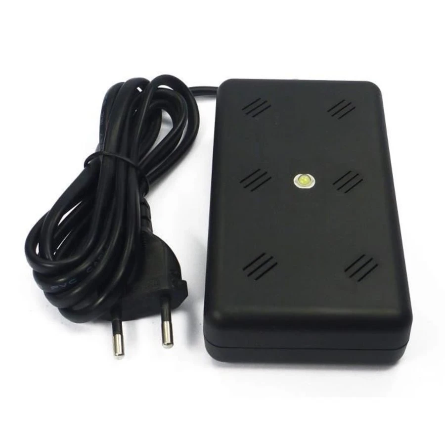 De verjager heeft een snoer van 150 cm en een bereik van maximaal 50 vierkante meter.