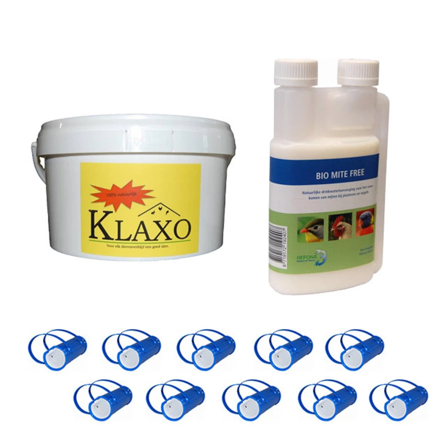 Met dit pakket bestrijdt u bloedluizen op verschillende wijze en daardoor zeer effectief. Het pakket is geschikt voor kippenhokken tot 2 vierkante meter en bestaat uit: