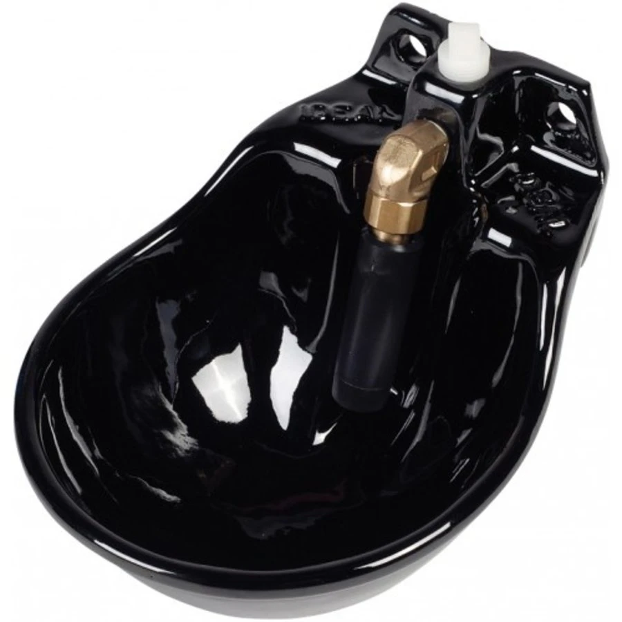 Drinkbak met buisventiel is een drinkbak voor rundvee en paarden. Geëmailleerde drinkschaal met langzaam lopende buisventiel.