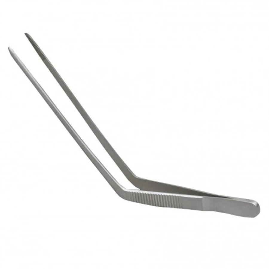 De pincet gebogen Loco is een oorpincet, kniegebogen met geribbeld uiteinde van JUNAI.