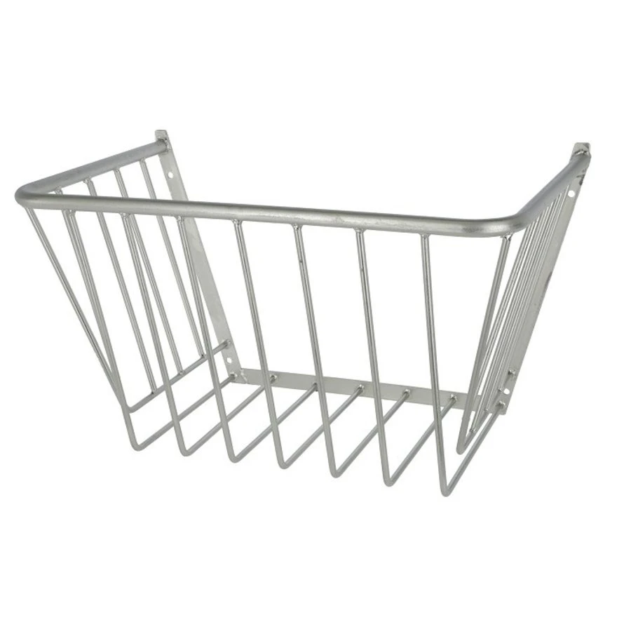 Deze enkele hooiruif heeft een spijlafstand van 85 mm en is aan de wand te bevestigen. De spijldikte is 10 mm en de hooiruif is verzinkt