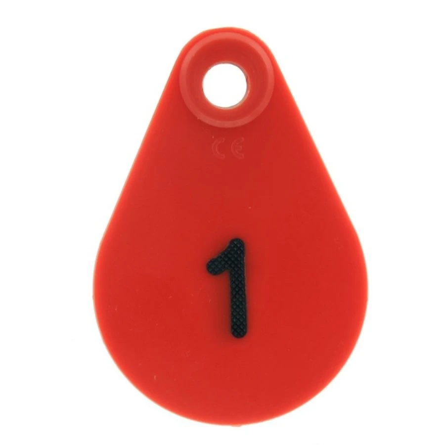 Deze nekplaatjes zijn bedrukt en verkrijgbaar in de kleuren blauw, geel, rood en groen. Verkrijgbaar per serie van 25 stuks