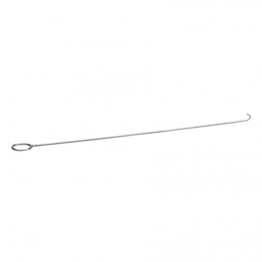 Verloshaak voor lammeren is van roestvrijstaal met knop.
