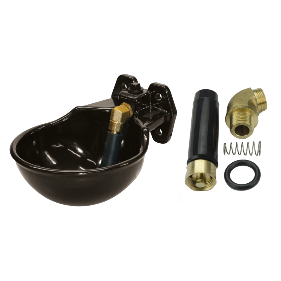 De stevige waterbak gemaakt van gietijzer en met geëmailleerde staaf. Deze drinkbak is gelakt en eenvoudig te reinigen. Voor wand en buis montage, met koperen pijp ventiel. Waterinlaat 1/2 inch van boven en onder.
