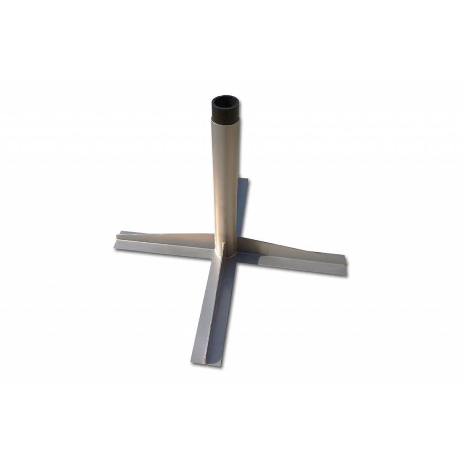 Met deze roestvrij stalen voet kunt u de palen van de vliegers bevestigen op het dak. De voet dient verzwaard te worden met tegels en/of andere producten. De voet heeft een PE binnenbuis om schade aan de palen te voorkomen.