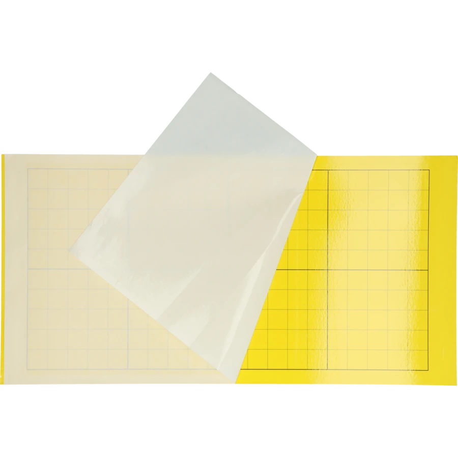 De dubbelzijdige lijmplaat is voorzien van een rastermotief om determinatie te vereenvoudigen.