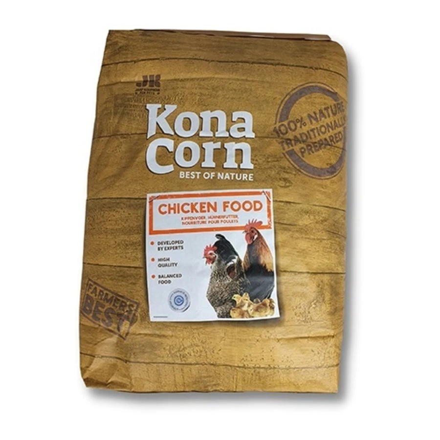 De KonaCorn maisvlokken zijn uitermate geschikt om te geven aan kippen maar ook aan paarden. U kunt er uw eigen mengsel mee maken in combinatie met andere voeders.