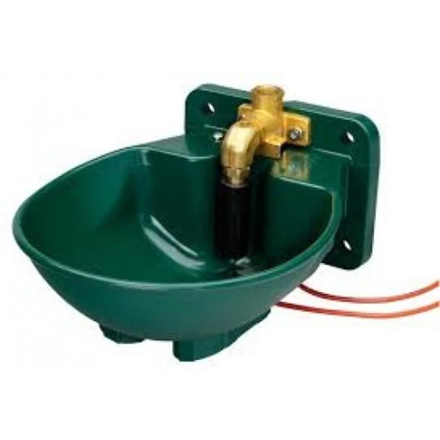 Drinkbak verwarmingskabel is een groene drinkbak van kunststof met buisventiel voor rundvee en paarden, 230 volt 45 watt.
