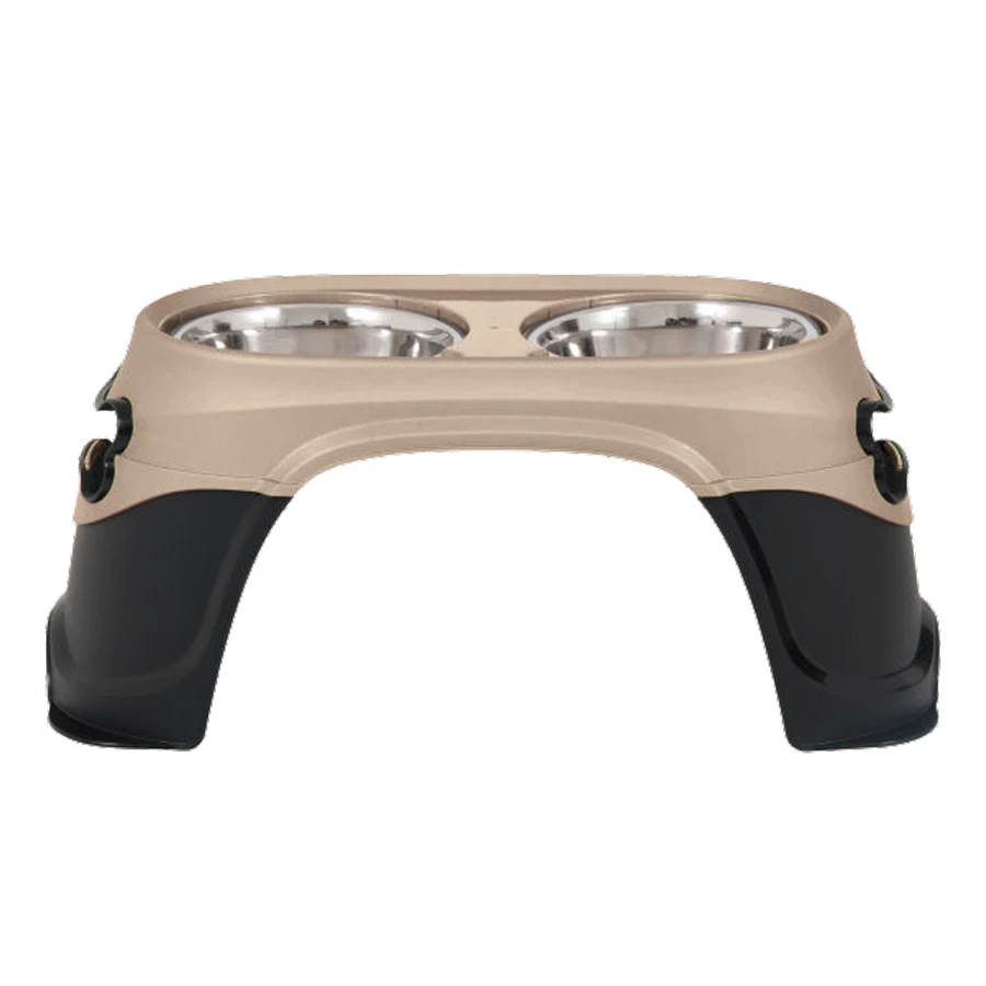 Honden kunnen nu ‘op niveau’ eten met deze verhoogde voer- en drinkbak van Petmate. Het komt de spijsvertering ten goede, en is vooral voor de gewrichten van oudere honden ideaal. De rubberen inzetstukken voorkomen lawaai van de bakken en houden ze netjes op hun plaats.