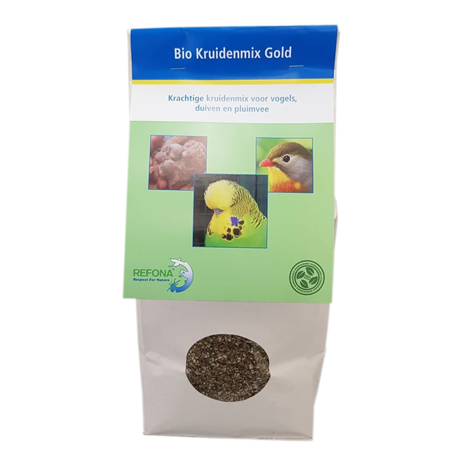 Voor een optimale gezondheid van uw vogels en pluimvee geeft de Kruidenmix Gold van Refona!