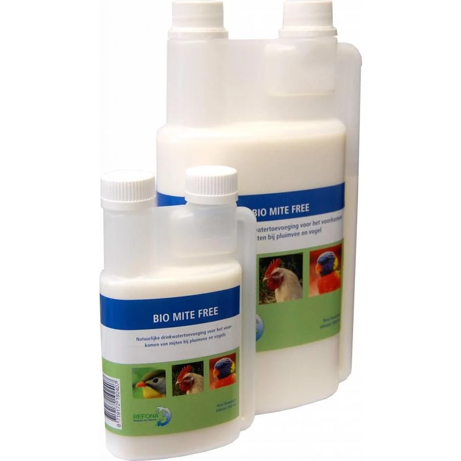 Bio Mite Free is volledig natuurlijk en bestaat uit planten- en kruidenextracten. Door toevoeging van Bio Mite Free aan het drinkwater van uw pluimvee of vogels wordt het bloed onaantrekkelijk voor alle bijtende luizen en mijten. Uw dieren worden minder gebeten waardoor er snel verlichting zal optreden. Door dat de volwassen luizen en mijten niet meer bijten zullen deze snel uitsterven daar zij geen voedsel (bloed) meer hebben. Door de ingrediënten wordt ook de voortplanting van de mijten en luizen negatief beïnvloed.