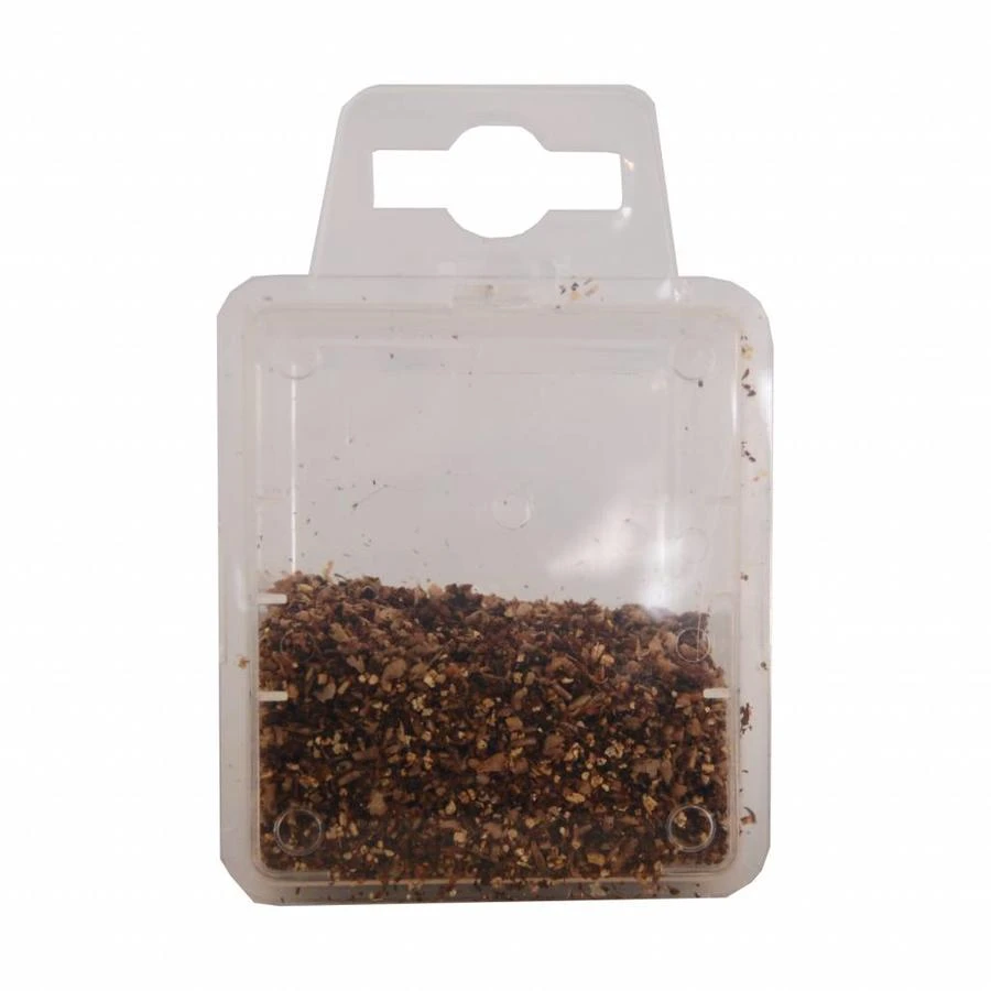 Wanneer je het materiaal met daarin de Dutchy’s met een loepje bekijkt zie je de roofmijten tussen de korreltjes bewegen. Het is de bedoeling dat de Mite Boosters horizontaal worden opgehangen. Daarbij is het van belang goed de handleiding te volgen m.b.t. het aantal Mite Boosters wat u dient te gebruiken. Over het algemeen kunnen we stellen dat de Mite Boosters het meest effectief zijn, maar in sommige gevallen kan het ook nuttig zijn om los materiaal vanuit de flesjes te gebruiken. Zo is het bij vogels erg zinvol om in het broedseizoen af en toe in elk nestje een dopje roofmijten te verdelen. Zo krijgen de eventuele bloedmijten geen kans om de jonge vogeltjes aan te tasten. Met name bij Kanaries kan deze werkwijze zeer zinvol zijn, omdat de aantasting daar vaak via de nestjes plaats vindt. Ook in vochtige terraria kan men het materiaal uit de flesjes gebruiken om het in hoopjes in het terrarium te verdelen. Het is dan wel van belang dat het materiaal enkele weken niet uit kan drogen. In het materiaal bevinden zich naast enkele volwassen roofmijten ook veel eieren en larven. Wanneer het materiaal wat vochtig blijft zullen deze zich allemaal kunnen ontwikkelen en de strijd aan gaan met aanwezige parasieten. Voor de exacte manier van uitzetten en de doseringen verwijzen wij u naar de handleiding hier onder.