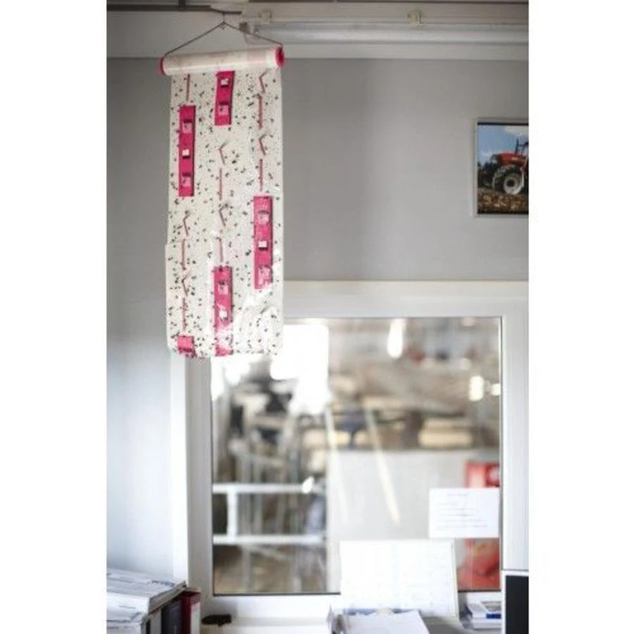 Rol af tot de gewenste lengte en hang de val horizontaal of verticaal aan het plafond. Wanneer het stuk vol zit met vliegen knipt u dit eenvoudig af en rolt u een nieuw stuk af.