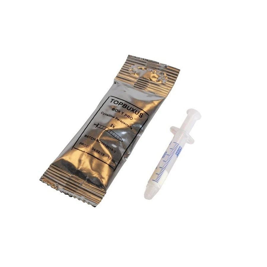 Bij de val zitten twee spuitjes met lokstof om de mannelijke motten aan te trekken en te vangen. Een spuitje heeft een werking van 100 dagen. De lokstof in de val trekt alleen de buxusmot aan en heeft geen invloed op bijvoorbeeld andere, nuttige, insecten. Zo kunt u de val een heel seizoen van lokstof voorzien. De val is bij te vullen met elke lokstof of feromoon capsule.