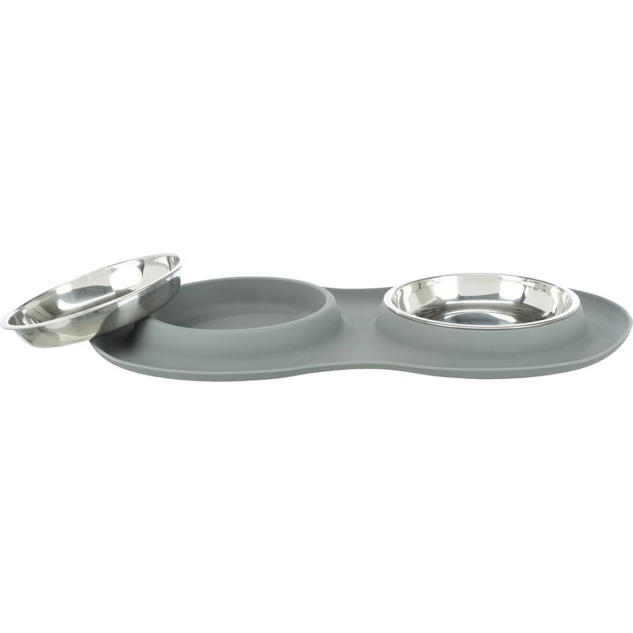 Deze bakken-set heeft een bakkenhouder van siliconen en creëert een schone omgeving voor uw huisdier om gevoerd te worden. Dit is een platte uitvoeren met 2 rvs voer/waterbakken met houder. Doordat de houder gemaakt is van siliconen is het slipvast.