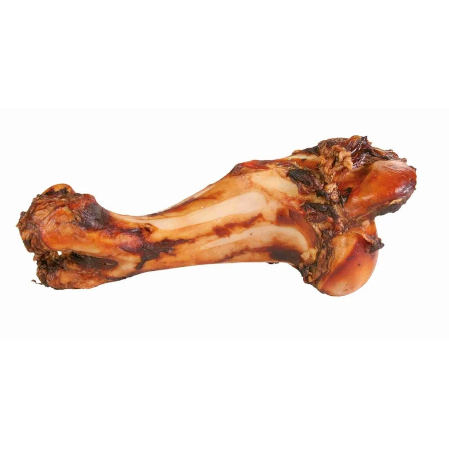 Dit jumbo kalfsbot is een lekkere snack waarmee tegelijker tijd het gebit van uw hond verzorgt word. Dit bot is gerookt.