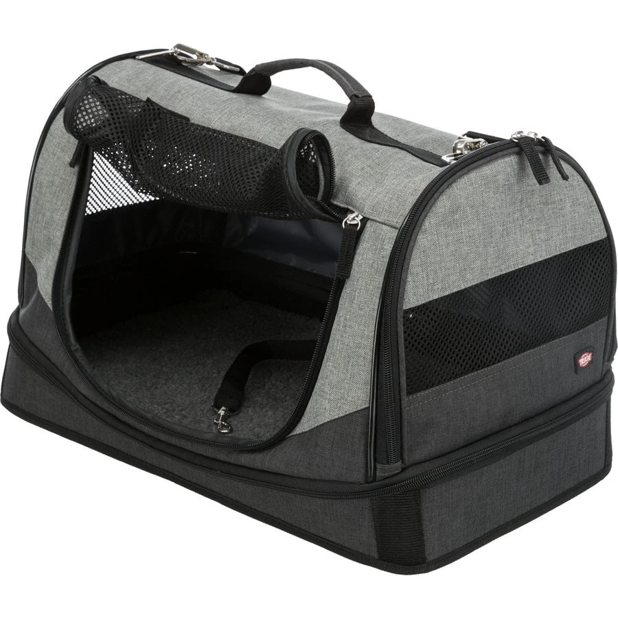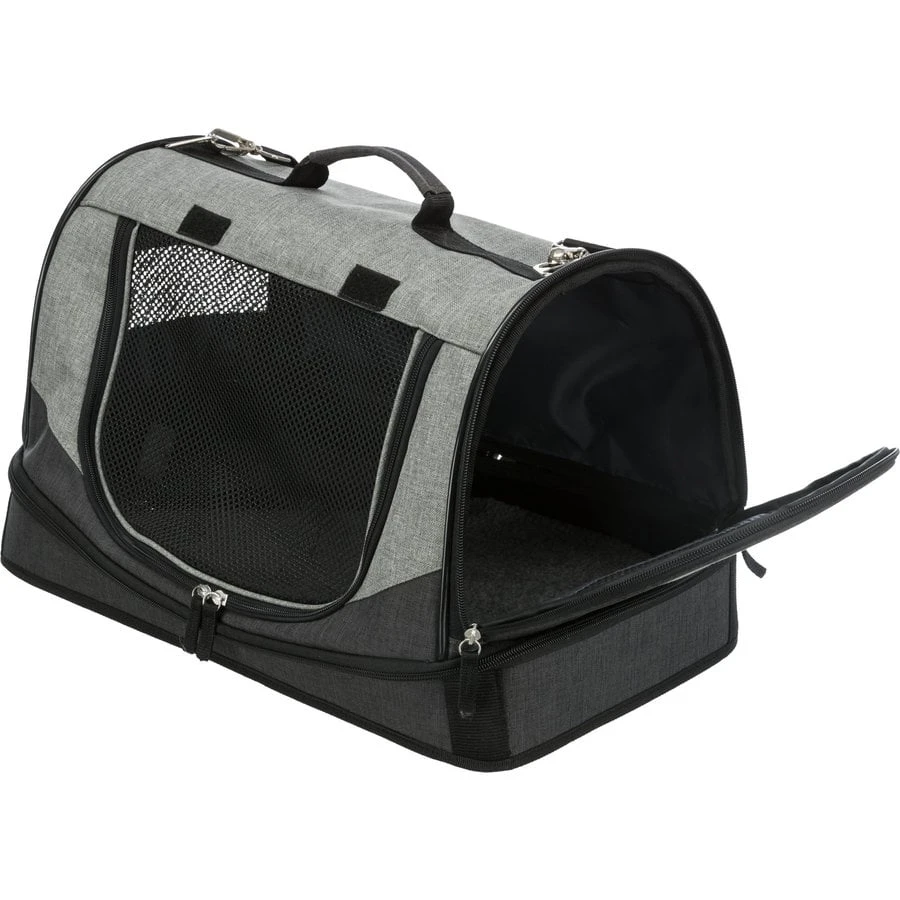 Tas Holly is de tas welke aan zij- en voorkant te openen is en het uw makkelijk maakt om uw huisdier mee te nemen. Een reisbed en draagtas in één. Middels een ritssluiting is afdekking volledig afneembaar. De tas bevat buitenvakken, geïntegreerde korthouder en afneembare schouderriem. Gemaakt met gevoerde bodemplaat met schapenvacht look (polyester), welke uitneembaar is. De rest van de tas is gemaakt van degelijk polyester.