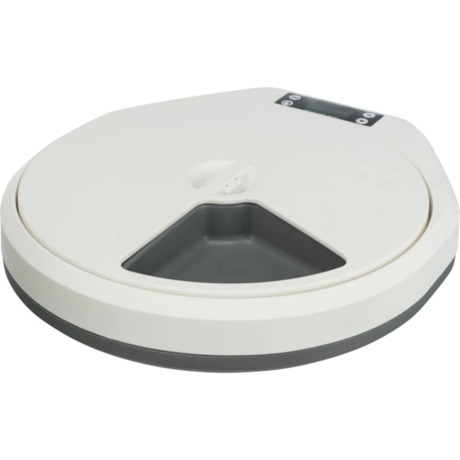 Met de Trixie Voederautomaat TX4+1 kunt u uw kat of kleine hond tot en met 4 maaltijden per dag serveren. U kunt de automaat zo instellen dat deze op de ingestelde tijden van maaltijd wisselt. Ideaal als u overdag niet veel thuis bent. Door stevige klep kan uw huisdier niet bij de overige maaltijden en zal deze dus nooit te veel eten.